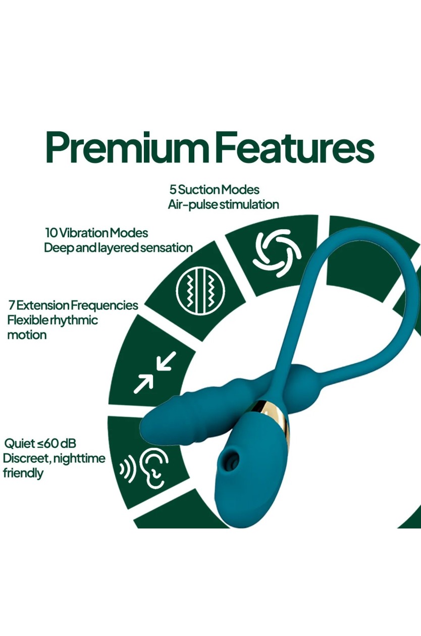 Mit 5 Saugmodi, 10 Vibrationsmustern und 7 teleskopischen Frequenzen können Sie Ihr persönliches Vergnügen individuell gestalten und sowohl interne als auch externe Bereiche gleichzeitig stimulieren. Das Massagegerät besteht aus hochwertigem, körperfreundlichem Silikon und robustem ABS, was eine sanfte Berührung und einen angenehmen Halt während der Anwendung gewährleistet.