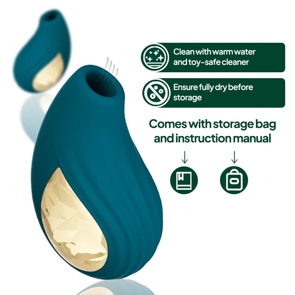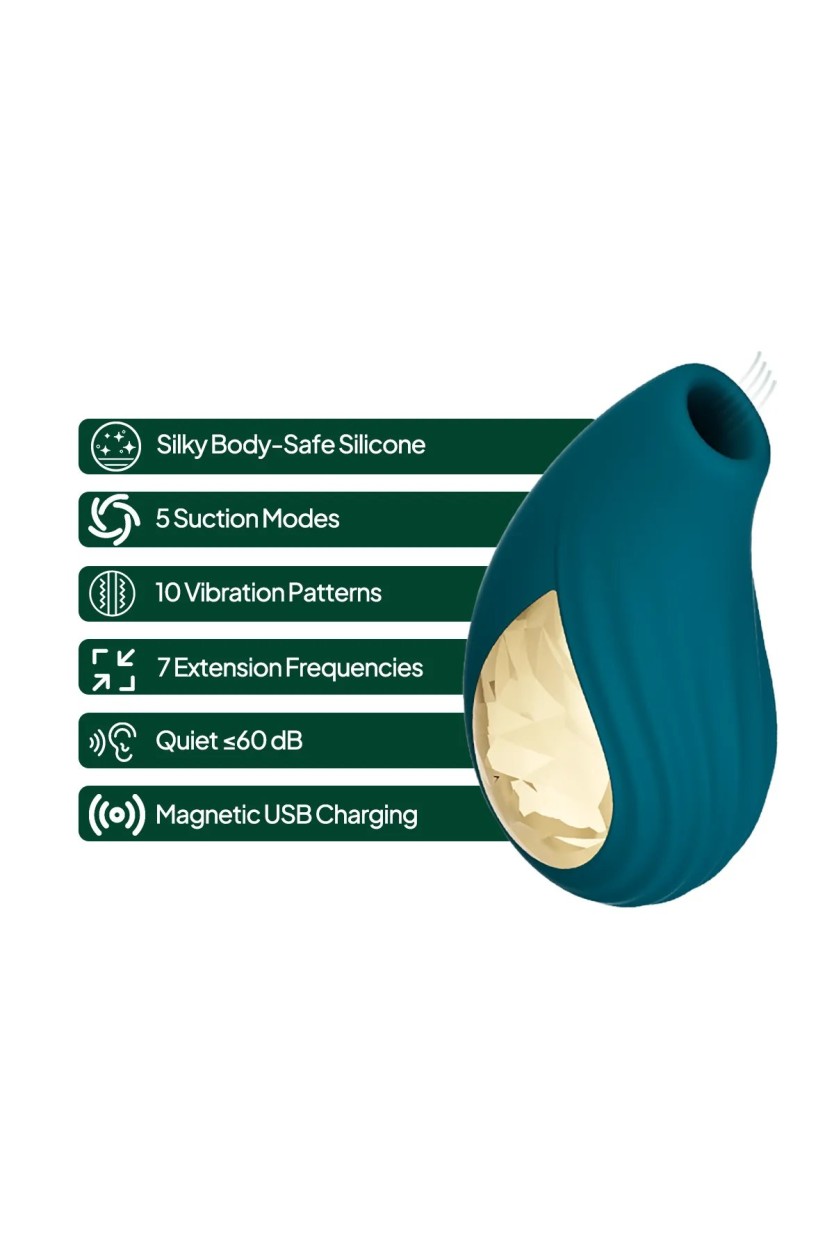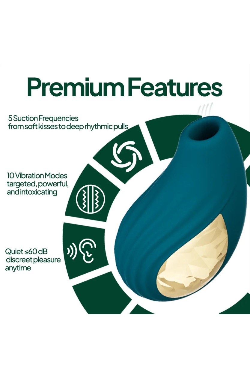 Experience intense pleasure with the Aiersha Velvet Green, an elegant 2-in-1 air suction device and vibrator that enhances your intimate moments. This device combines advanced air suction technology with powerful vibrations, offering you a comprehensive stimulation experience tailored to your needs.