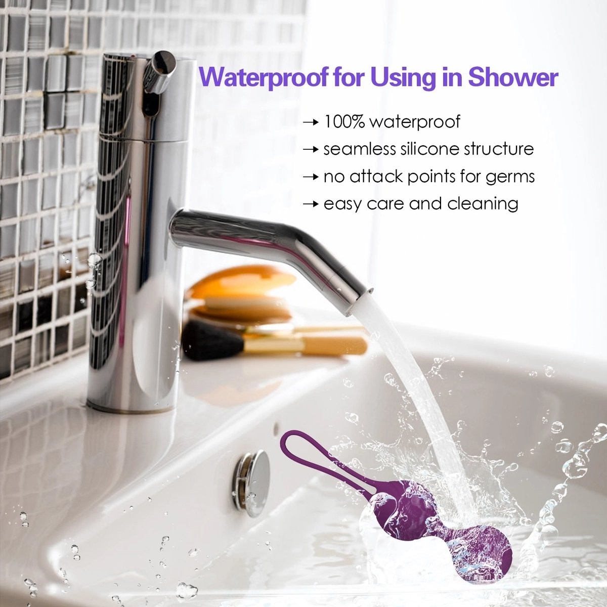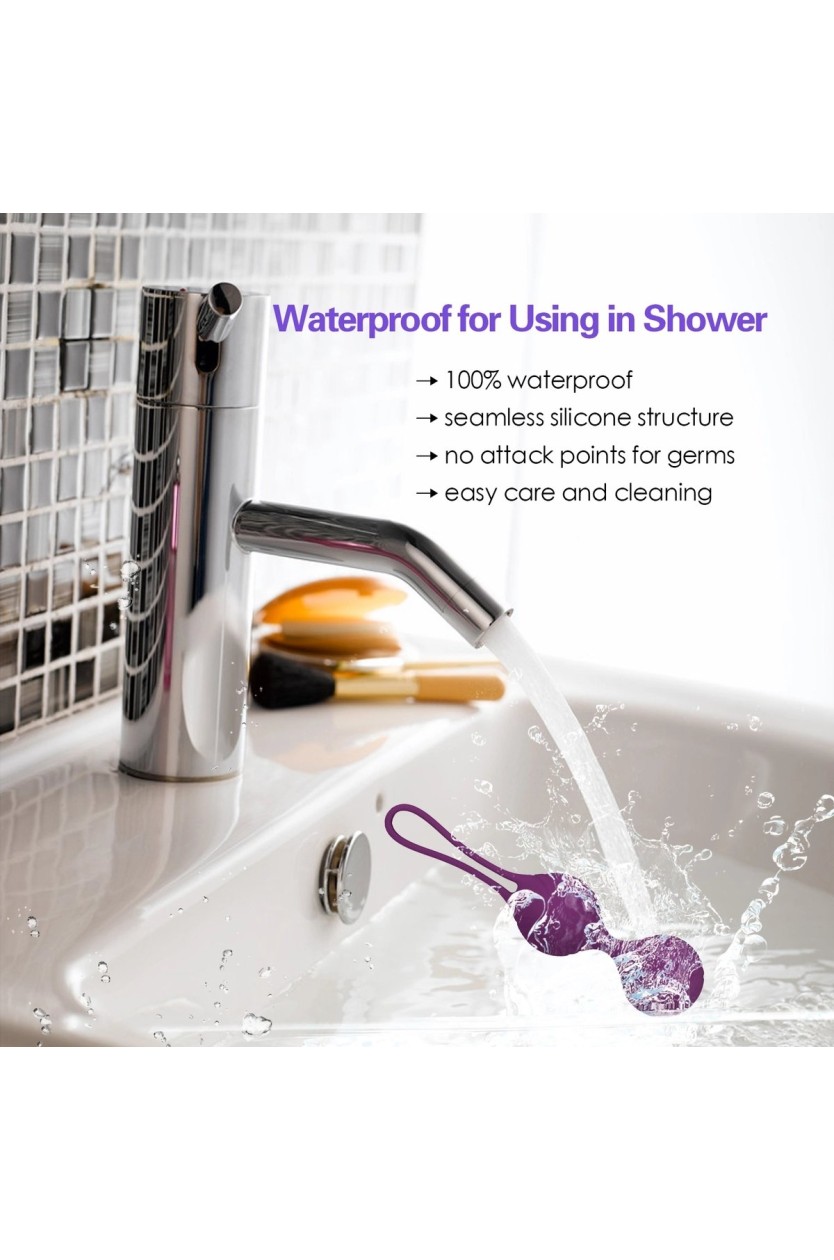 The Aiersha Love Balls are made from skin-friendly materials such as food-grade silicone and ABS. They are 100% waterproof (IP65), making cleaning easy and ideal for use in the shower. The seamless design prevents the accumulation of germs, ensuring your health and hygiene.