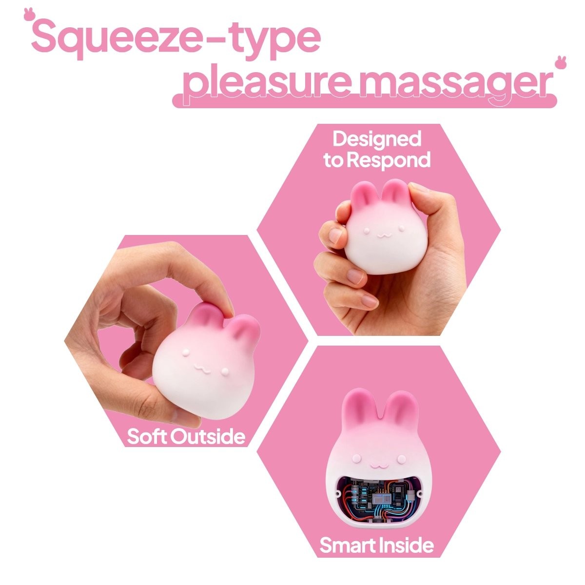 Discover the Aiersha Blush Bunny Sense, a clitoral stimulator that enhances your intimate moments. This appealing air pulse vibrator utilizes "Press for Sensation" technology, allowing you to directly control your sensations. Thanks to the pressure-sensitive control, you can intensify your pleasure by adjusting your grip, creating an interactive experience.
