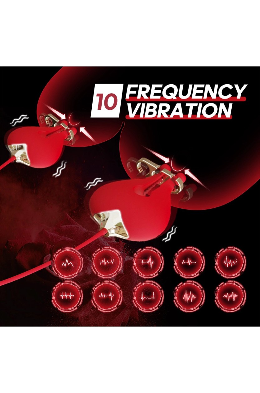 Crafted from high-quality silicone and ABS, these clamps ensure a secure grip thanks to their non-slip interior, without putting strain on the delicate skin of your nipples. With compact dimensions of 240 x 40 mm and whisper-quiet operation, you have access to 10 different vibration frequencies that adapt to any mood. The IPX6 waterproof design allows for versatile use, whether in the shower or during intimate moments.